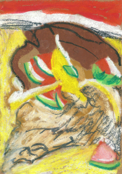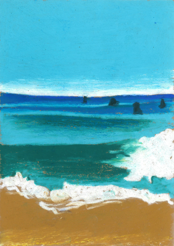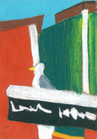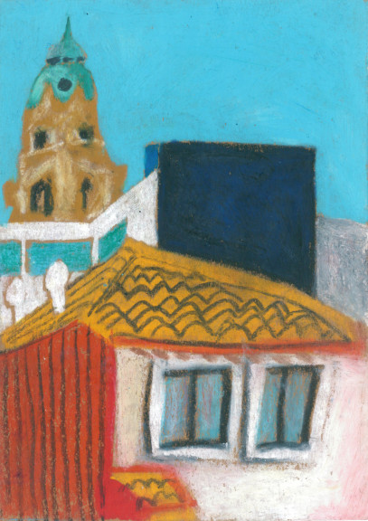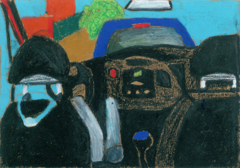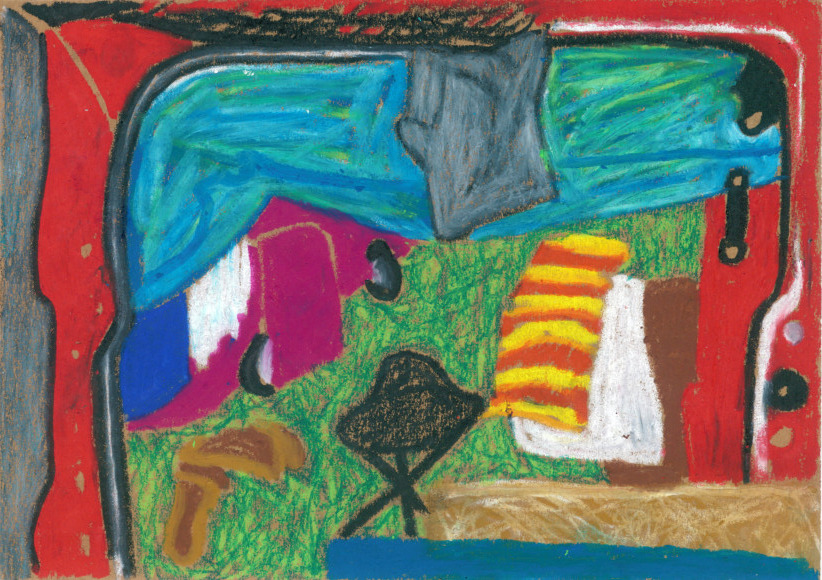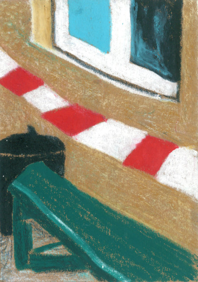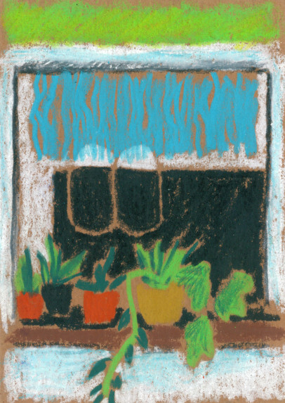 Tony Mahoni's small-format drawings are like the road trip of a 10-year-old drawing on the back seat of the car the passing landscapes or depicting the trash can situation of a teenager's flatmate. With a lot of colour, the lifeless environment becomes vibrating matter. He likes to paint animals and plants since he is little. Later in his life, he focussed on stones and rocks until he was more drawn towards the aesthetics of water and waves. After several years of artistic uncertainties and feelings of a certain colourlessness, he starts using colours again—right on time during a social crisis and with a forged resume. The beginning of the lockdown was also birth of his language of colour and shape. After having spent four artistic weeks in Porto as well as a residency in Antwerp, he has returned to his home in Bremen to showcase his oil pastel works at Kukoon.